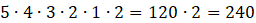Traktujemy 2 modele, które muszą stać obok siebie jako jeden model, pozostałe samochody mogą być ustawione na 4, 3, 2 i 1 różnych sposobów. Otrzymany wynik musimy pomnożyć przez 2, aby uwzględnić kolejność samochodów stojących obok siebie.