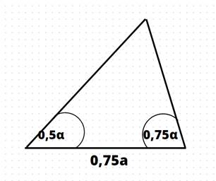 Aby skonstruować trójkąt o boku o długości 0,75 α i kątach przyległych do tego odcinka o miarach 0,75 α oraz 0,5α:
