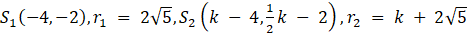 W tym zadaniu musisz znaleźć takie wartości parametru k, aby te okręgi przecinały się.