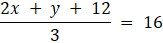 Oblicz x i y wiedząc, że średnia arytmetyczna wynosi 12 dla liczb x, y + 2, 9 a dla liczb 2x, y, 12 jest równa 16.