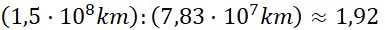 Działania z notacją wykładniczą wykonuje się tak samo, jak działania na potęgach. Należy podzielić odległość Ziemi od Słońca przez odległość Ziemi od Marsa.