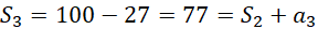 Wyznaczamy sumę dwóch wyrazów I trzech. Zauważamy, że trzeci wyraz można obliczyć z równości sumy trzech wyrazów i wartości sumy dwóch pierwszych i tego trzeciego.