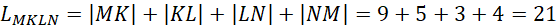 Zacznij od obliczenia długości odcinka EF. Łączy on środki boków AB i AC, więc jego długość będzie dwa razy krótsza niż długość odcinka AB. Następnie oblicz długość odcinka NL. Łączy on środki boków AE i AF, więc jego długość będzie dwa razy krótsza niż długość odcinka EF. Kolejno wyznacz długość odcinka MK. Jest on odcinkiem łączącym środki ramion trapezu, więc jego długość jest równa średniej arytmetycznej podstaw trapezu. Na koniec oblicz obwód MKLN.
