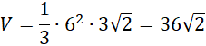 Określ objętość ostrosłupa prawidłowego czworokątnego ABCDS, którego krawędź podstawy ma długość 6, zaś kąt ASC jest prosty.