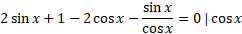 Jeśli w zadaniu pojawia się tangens, to należy od razu założyć, że cosinus nie jest równy 0. Rozpisz tangensy ze wzoru jako iloraz sinusa i cosinusa. Pomnóż obie strony równania przez cosinus, aby zlikwidować ułamki. Zauważ, że możesz wyciągnąć przed nawias wspólny czynnik, jakim jest: