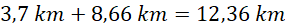 Dodaj długości odpowiednich fragmentów tras.