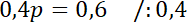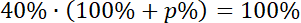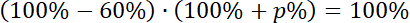 , jeśli cenę obniżono o 60%, a następnie podniesiono o p% i wrócono do ceny wyjściowej. Zapisz to za pomocą ułamków dziesiętnych i z powstałego równania wyznacz wartość
