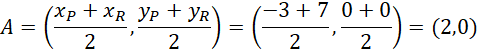 Na koniec oblicz współrzędne punktu przecięcia przekątnych prostokąta PQRS. Zauważ, że jest on środkiem odcinka PR.
