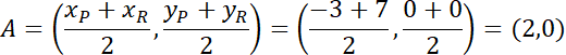 Na koniec oblicz współrzędne punktu przecięcia przekątnych prostokąta PQRS. Zauważ, że jest on środkiem odcinka PR.