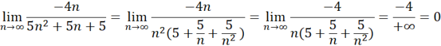 Jeśli spotkamy się z ułamkiem tak, jak w tym przypadku, to należy wyłączyć z licznika i mianownika najwyższe potęgi liczby n. Następnie musisz skrócić wyłączone n. Dalej trzeba sprawdzić, ile wynosi granica z każdego składnika w liczniku i mianowniku.