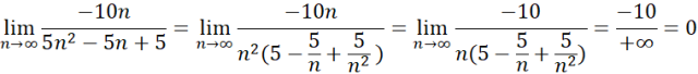 Jeśli spotkamy się z ułamkiem tak, jak w tym przypadku, to należy wyłączyć z licznika i mianownika najwyższe potęgi liczby n. Następnie musisz skrócić wyłączone n. Dalej trzeba sprawdzić, ile wynosi granica z każdego składnika w liczniku i mianowniku.