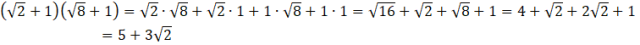 W tym zadaniu musisz przemnożyć każdy wyraz pierwszego nawiasu przez każdy wyraz drugiego. Następnie musisz dodać do siebie wyrazy podobne i uprościć pierwiastek.