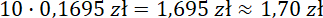 Odpowiedź: 10 koron czeskich kosztowało 1,70 zł.