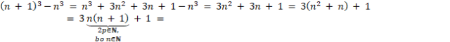 Tezę dowodzimy, stosując WSM: (a + b)3 = a3 + 3a2b + 3ab2 + b3. Liczbę przy dzieleniu przez 3 dającą resztę 1 zapisujemy jako