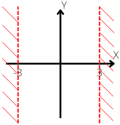 x > 3 ∨ x < -3