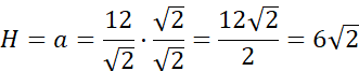 Zauważ, że powstały trójkąt to trójkąt równoramienny, zatem wysokość graniastosłupa jest równa długości boku podstawy.