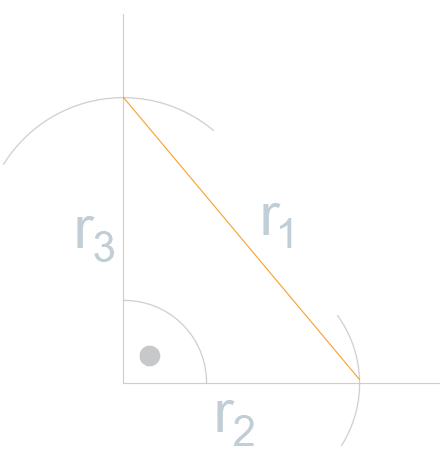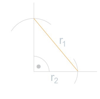 Na ramionach trójkąta prostokątnego, za pomocą cyrkla odłóż długości promieni danych okręgów jako przyprostokątną i przeciwprostokątną