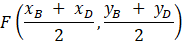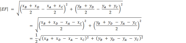 Niech E i F będą środkami przekątnych odpowiednio AC i BD. Ich współrzędne to: