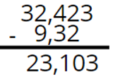 W tym zadaniu musisz pisemnie obliczyć 32,423 – 9,32.