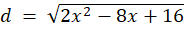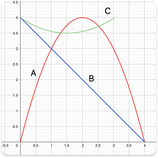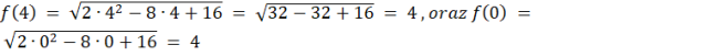 W tym zadaniu musisz wybrać, która funkcja na rysunku przedstawia odwzorowanie, które przyporządkowuje długość przekątnej prostokąta, jeżeli jego pierwszy bok ma długość x, a obwód wynosi 8. Napisz wzór tej funkcji.