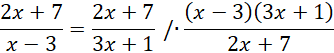 Zapisujemy i rozwiązujemy założenia, następnie przemnażamy przez mianownik i przy dodatkowym założeniu dzielimy przez licznik. W ten sposób otrzymujemy pierwsze rozwiązanie, następnie sprawdzamy, czy równanie jest spełnione dla wartości, która wykluczyliśmy na podstawie dodatkowego założenia.