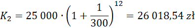 Półroczna stopa procentowa wynosi 4% i jest naliczana 12 razy w roku, więc i .