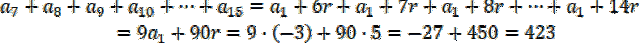 Na podstawie podpunktu b) znasz wartość różnicy ciągu i jego pierwszy wyraz.