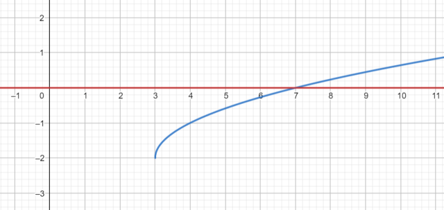 Aby rozwiązać nierówność f(x) < 0 narysuj wykres funkcji f – kolor niebieski oraz funkcji y = 0 – kolor czerwony. Rozwiązaniem nierówności są wszystkie te argumenty, dla których wykres funkcji y = 0 znajduje się ponad wykresem funkcji f. Przy odczytywaniu rozwiązań pamiętaj o dziedzinie funkcji f.