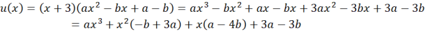 Podany wielomian przedstaw w najprostszej postaci, a następnie porównaj współczynniki przy takich samych potęgach i na tej podstawie wyznacz wartości szukanych współczynników.