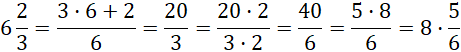 Najpierw liczbę mieszaną zamień na ułamek niewłaściwy, poprzez pomnożenie liczby całości przez mianownik i dodanie do tego licznika. Mianownik pozostanie bez zmian. Następnie rozszerz ułamek, przez 2, żeby możliwe było uzyskanie w liczniku czynnika 8. Zapisz licznik w ułamku po prawej stronie jako iloczyn, liczby z lewej strony równania i drugiej liczby, jaką należy dopełnić. Następnie po takiej zamianie czynnik z liczebnika równy liczbie z lewej strony równania zapisz przed ułamkiem, by dostać jaką liczbą jest ukryty pod znakiem zapytania ułamek.