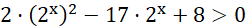 Podstaw za funkcję wykładniczą zmienną pomocniczą większą od zera. Rozwiąż powstałą w ten sposób nierówność kwadratową. Przekształć zbiór rozwiązań w 𝑡 na zbiór rozwiązań w 𝑥.