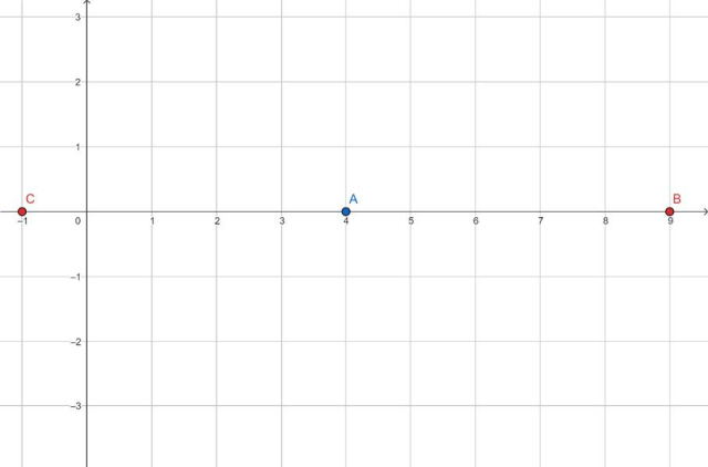 Zaznacz na osi punkt A = 4 i dwa punkty odległe od niego o 5: