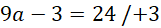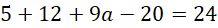 Zauważ, że jedna przekątna nie ma niewiadomych, więc użyj jej jako prawej strony równania. Następnie przyrównaj sumy liczb w poszczególnych kolumnach lub rzędach do 24 (przekątna bez niewiadomych) i rozwiąż równania, wyliczając niewiadome a, b, c.