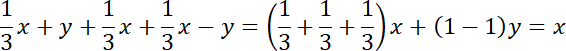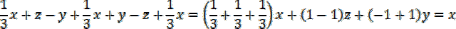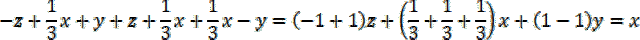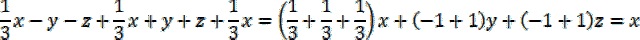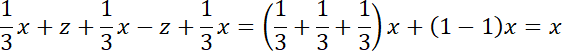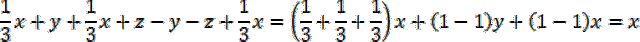 Policz sumę wyrażeń w każdym wierszu, kolumnie i na przekątnej. Przekształć dodawanie i odejmowanie wyrażeń zawierających tę samą literę na jedno wyrażenie, którego współczynnik jest sumą współczynników tych wyrażeń.