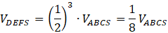 Ponieważ długość krawędzi bocznych ostrosłupa DEFS jest dwa razy mniejsza od długości krawędzi bocznych ostrosłupa ABCS, więc ostrosłupy te są podobne. Możesz obliczyć skalę podobieństwa tych brył.