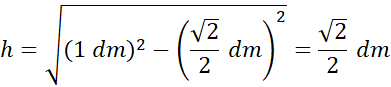 W kolejnym kroku, korzystając z tego samego twierdzenia, oblicz wysokość tego ostrosłupa, wiedząc, że przeciwprostokątna trójkąta prostokątnego jest równa 1 dm, a przyprostokątna ma długość połowy przekątnej podstawy.