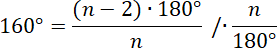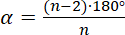 Miarę kąta wewnętrznego w wielokącie foremnym liczymy ze wzoru: