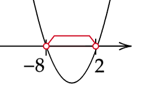 Zaznacz miejsca zerowe na osi, ramiona paraboli skieruj w górę, ponieważ współczynnik przy x jest dodatni. Zaznacz na niej argumenty, dla których parabola przyjmuje wartości ujemne będzie to rozwiązanie nierówności.