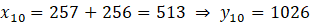 Wyznacz punkt A10, wiedząc, że kolejne punkt A1, A2, A3, … są środkami odpowiednio odcinków A0A2, A0A3, … oraz że pierwsze punkty w układzie współrzędnych to