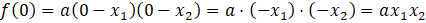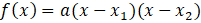 Wiadomo, że funkcja posiada miejsca zerowe, więc można zapisać jej wzór w postaci iloczynowej: