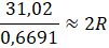 Zależność między bokami i kątami trójkąta, a promieniem okręgu opisanego na trójkącie opisuje twierdzenie sinusów. Możesz zapisać, że w tym przypadku: