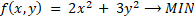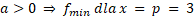Zadanie optymalizacyjne rozwiązujemy wpierw podając założenia dotyczące liczb x i y oraz uzależniając jedną zmienną od drugiej. Następnie tworzymy funkcję celu – wyrażenie dąży do minimum. Określamy współczynnik a oraz p i porównujemy z założeniami, a następnie obliczamy wartość najmniejszą.