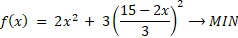 Wiedząc, że 2x + 3y = 15, określ możliwie najmniejszą wartość przyjmowaną przez wyrażenie 2x2 + 3y2.