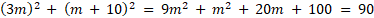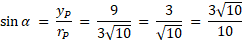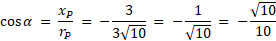 Punkt P o współrzędnych (3m, m + 10) leży na ramieniu końcowym kąta α. Dodając kwadraty obu współrzędnych tego punktu, otrzymujemy wynik równy 90. Znajdź wartości funkcji trygonometrycznych kąta α.