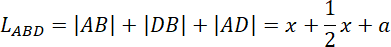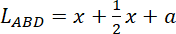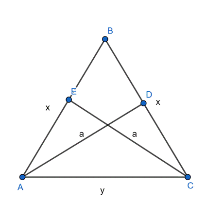 . Stwórz i rozwiąż układ równań wiedząc, że obwód trójkąta ABC ma 200 cm i obwód trójkąta ACE jest o 20 cm większy od obwodu trójkąta ABD.