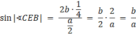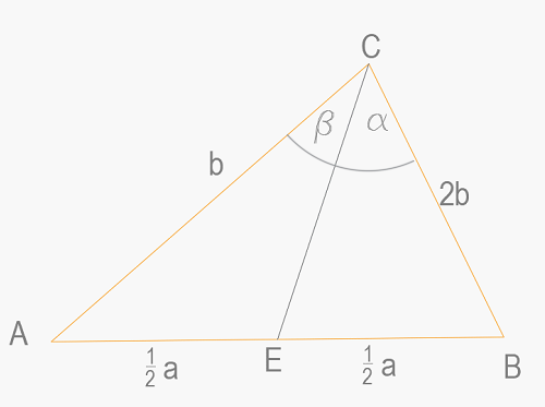 Dany jest trójkąt ABC, w którym bok BC jest dwa razy dłuższy niż AC. Środkowa poprowadzona z wierzchołka C podzieliła kąt na dwa, z czego sinus mniejszego wynosi