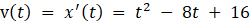 W tym zadaniu musisz znaleźć funkcje opisująca prędkość punktu w zależności od czasu, a następnie wyznaczyć taki przedział czasu, w którym punkt poruszał się ze wskazana prędkością.