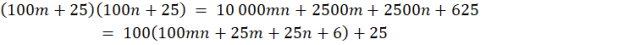 Pierwszy składnik uzyskanej sumy jest pewną liczbą naturalną pomnożoną razy 100, czyli jego dwie ostatnie cyfry to 00. Liczba o 25 większa ma dwie ostatnie cyfry równe 25.