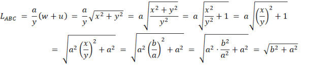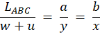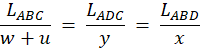 |AB| = x; |AC| = y; |BC| = w + u