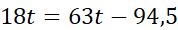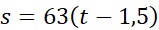 Oznaczywszy czas ze wzoru jako t, możemy wyznaczyć przebytą odległość dla obu osób. Odległości te są sobie równe, możemy zatem je do siebie przyrównać, a następnie wyznaczyć z powstałego równania czas podróży rowerzysty. Znając czas musimy powrócić do równania przedstawiającego przebytą drogę i obliczyć jej długość.